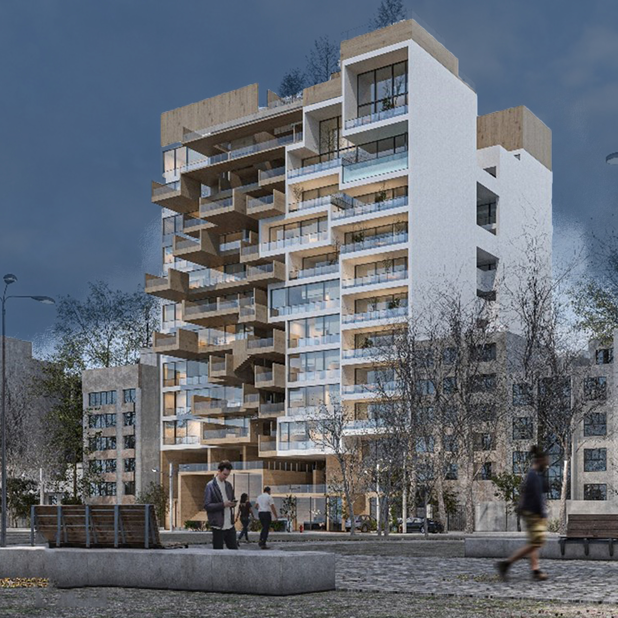 این ساختار کلیت پروژه ما را تشکیل داده و کلیه فضاهای جمعی و خدماتی را در برگرفته است و در قسمت مسکونی روابط همسایگی و ارتباط همسایگان را سازماندهی می کند .در این ساختار دو گونه تراس تعریف شده است( تراس عمومی و تراس اختصاصی). واحد ها هر دو گونه این تراس ها را در اختیار دارند .تراس های عمومی به عنوان یک فضای اختیاری در مشاعات به عنوان حیاط عمل کرده و بر اساس نیاز استفاده شونده این سطوح مورد استفاده قرار می گیرند که این امکان را به ساکنین می دهند که براساس دیدگاه فرهنگی و اجتماعی خود تصمیم بگیرند که فعالیت های خود را در کدام بخش انجام دهند