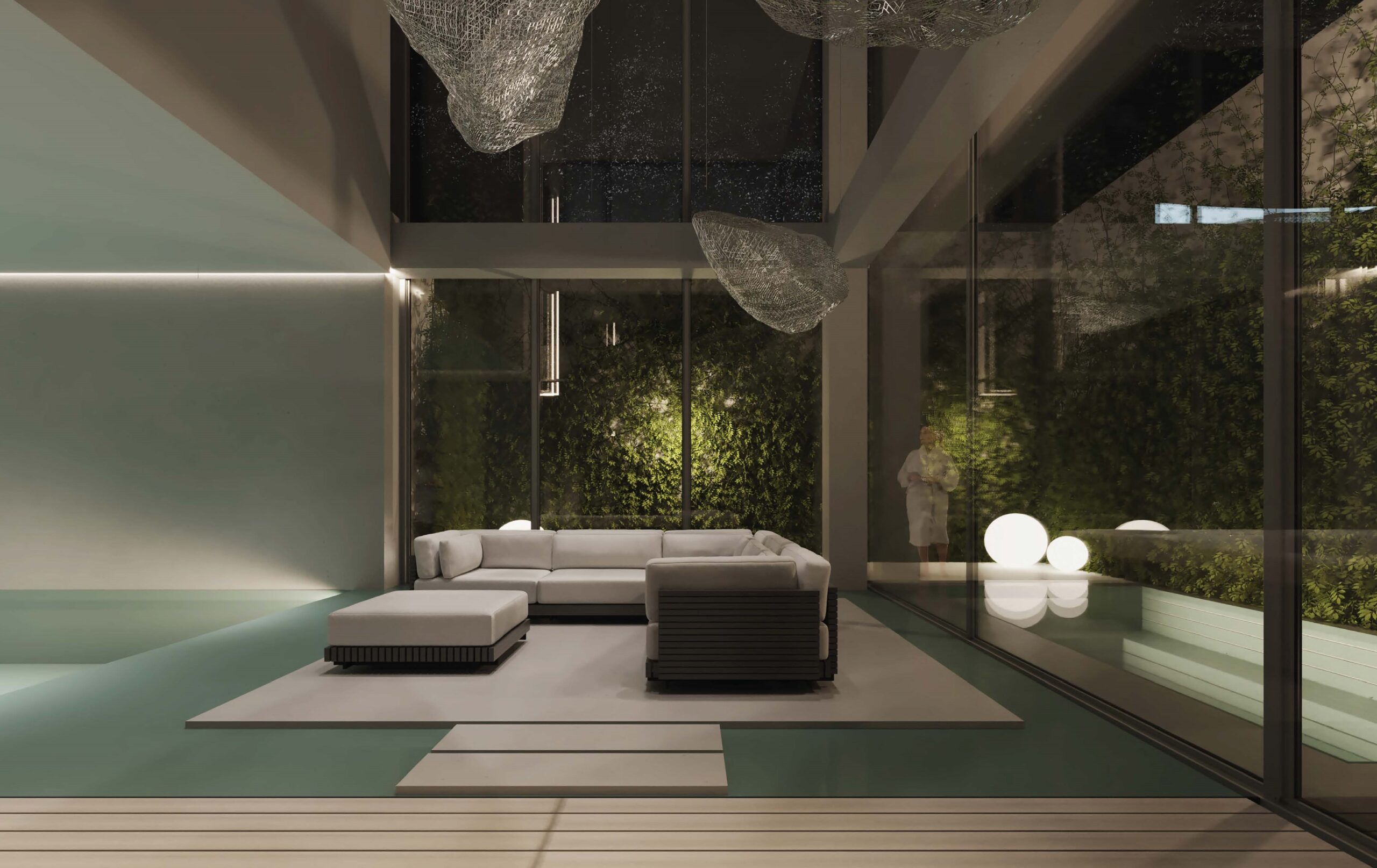 ELEVEN, is a unique residential mansion located in the southern vicinity of KHARAZM Park, which is also green from the inside. the architectural concept of this villa, which was designed by HADI TEHERANI, welcomes the light with open arms to flow generously into the house through the Diagonal skylight, 10-meter-high Curtain Wall, and 9-meter-high void.